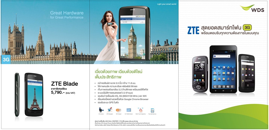 · ZTE Blade หน้าจอกว้าง 11.8 มม. ให้ภาพสวยคมชัด ด้วยระบบปฏิบัติการแอนดรอยด์ 2.2 Froyo ในราคาพิเศษเพียง 5,790 บาท