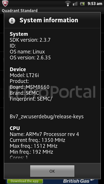 โดยข้อมูลใหม่ครั้งนี้เพิ่มรายละเอียดของชื่อรุ่นของตัวนี้ โดยเป็นไปได้ว่าจะใช้ชื่อว่า Xperia HD เท่านั้น จากชื่อก่อนหน้าที่ว่าเป็น Xperia arc HD โดยตัวที่หลุดจะมาพร้อมกับ Android 2.3.7 ซึ่งมาพร้อมกับ Xperia UI เเบบใหม่ ซึ่งคาดว่าอาจจะวางจำหน่ายก่อนได้รับตัวอัพเดท ICS ในภายหลัง