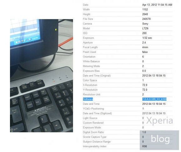 ซึ่งตัวของ EXIF นั้นก็มีจุดที่น่าสนใจอยู่ นั่นคือในส่วนของหัวข้อเวอร์ชันของ Software ที่แสดงเลข build เป็น 7.0.A.0.599_53_b100. แต่ถ้ามาดูเลข build ของ Sony Xperia S จะพบว่าเป็น 6.0.A.3.37 ดังนั้นก็เป็นไปได้ว่า Sony LT29i Hayabusa จะมาเป็นหนึ่งใน Xperia รุ่นสอง สืบทอดต่อจาก Sony Xperia S ตัวปัจจุบัน